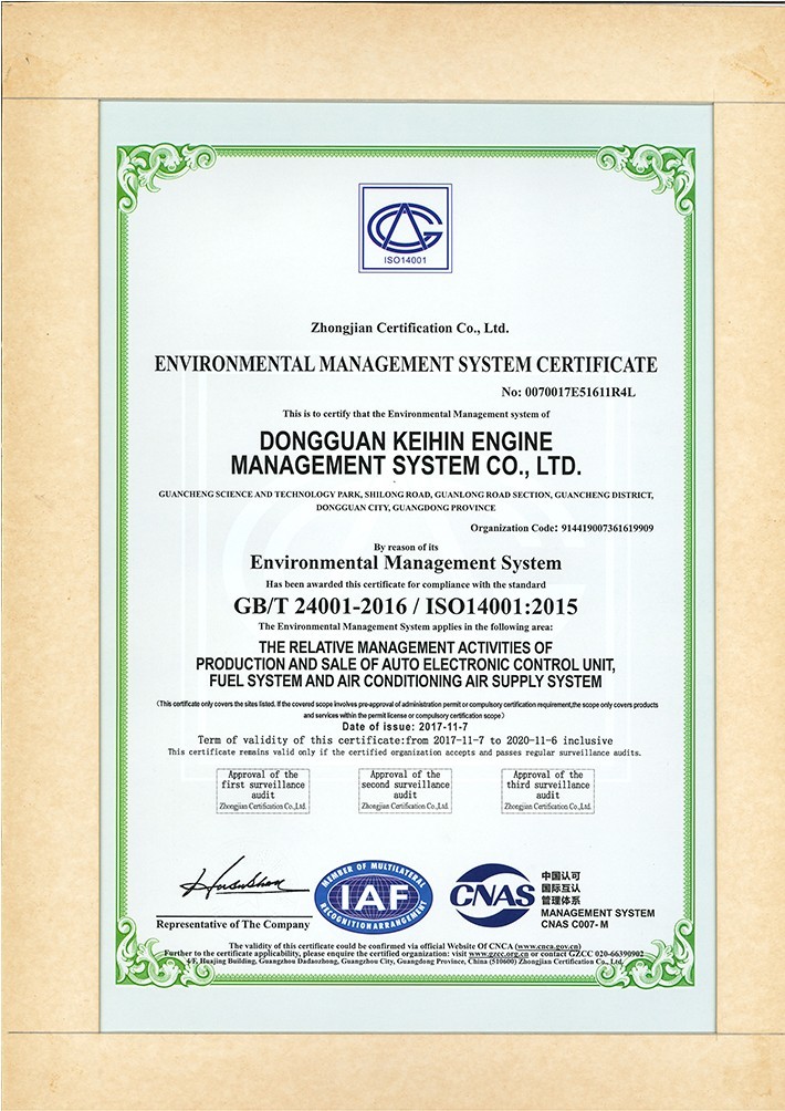 我司在2004年取得ISO9001品质认证,2005年取得ISO14001环境认证,2007年取得IS16949认证,2017年取得IATF16949认证。